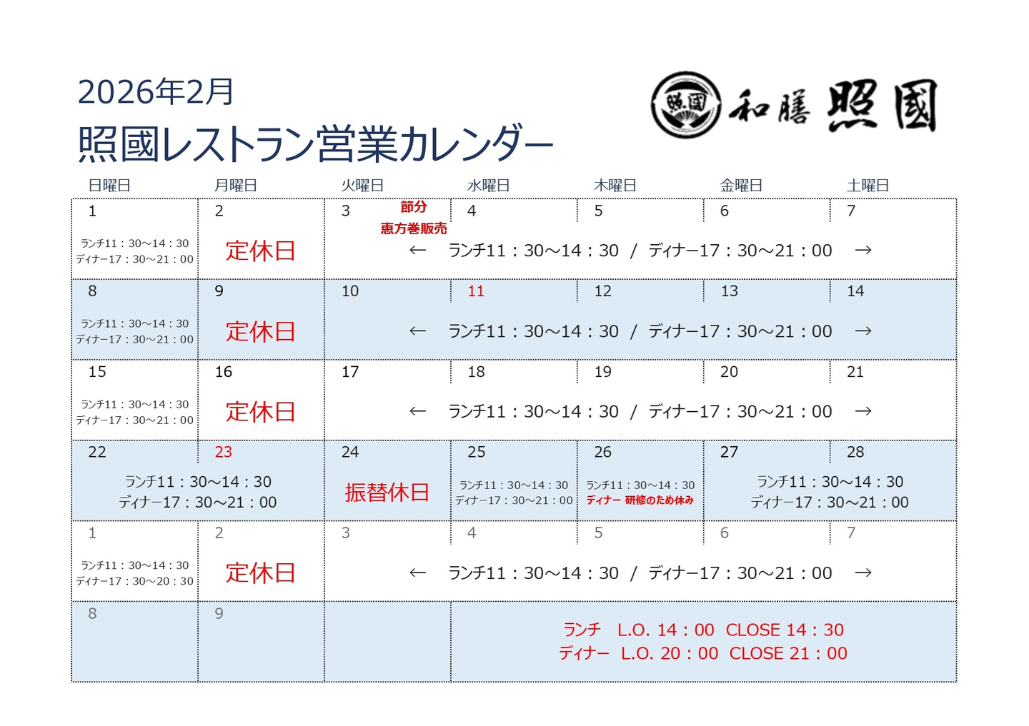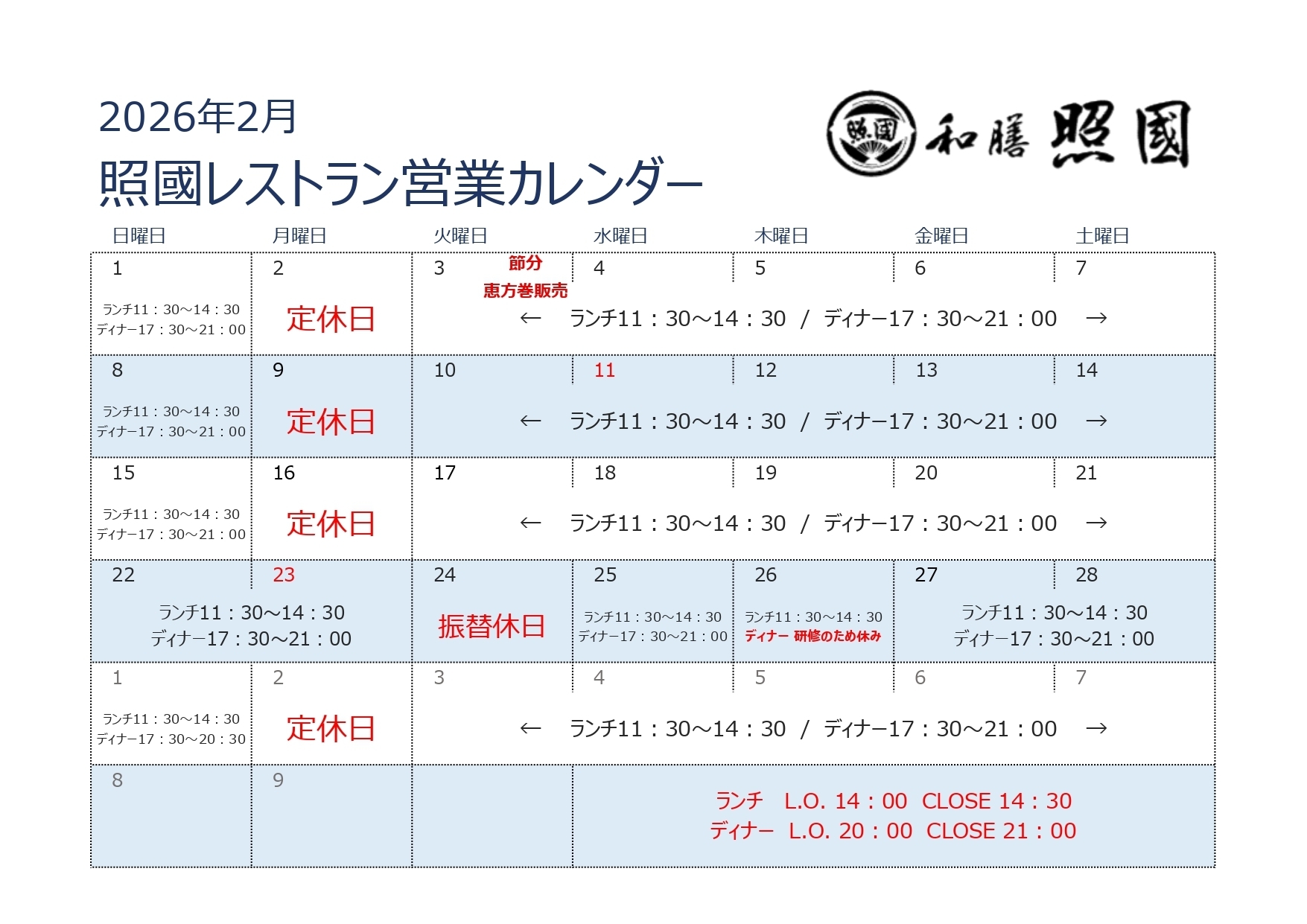 ※ご予約の全キャンセルは、2週間前までにご連絡をお願い致します。