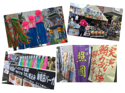 鮪バーガー、焼き鳥、じゃがバタ、豚汁など販売。